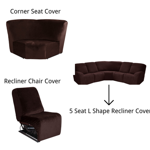 This 7 pieces L shape recliner sofa covers include 2 arm pieces, 4 seat and backrest pieces and 1 corner piece. Check the installation guide carefully(Instructions Included), it can be finished within 12 minutes by one person easily. Perfectly fit most 5 seats L shape couch sectional recliner sofa with a corner seat sized 70-85inch (180-215cm). Pleasure measure your sofa and check the measurement guide picture before purchasing to make sure it fit.