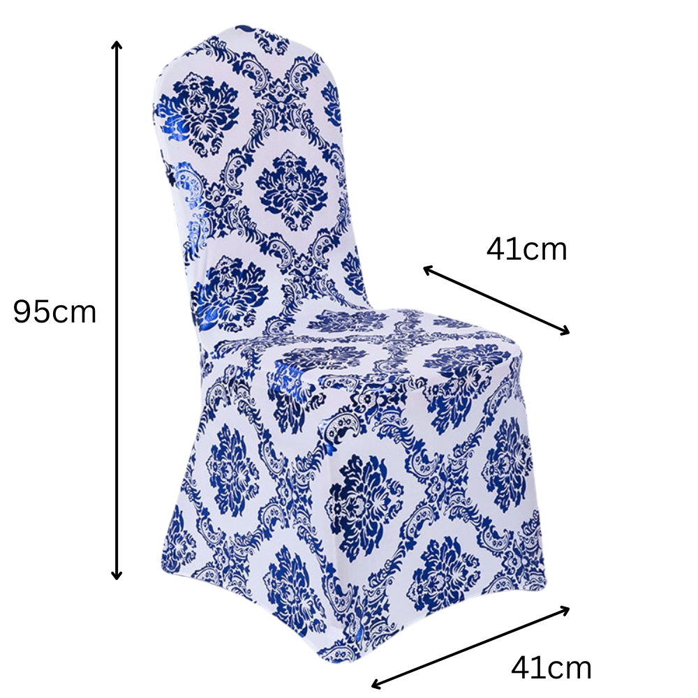 This chair cover fits most folding chairs(without armrest) in standard size.